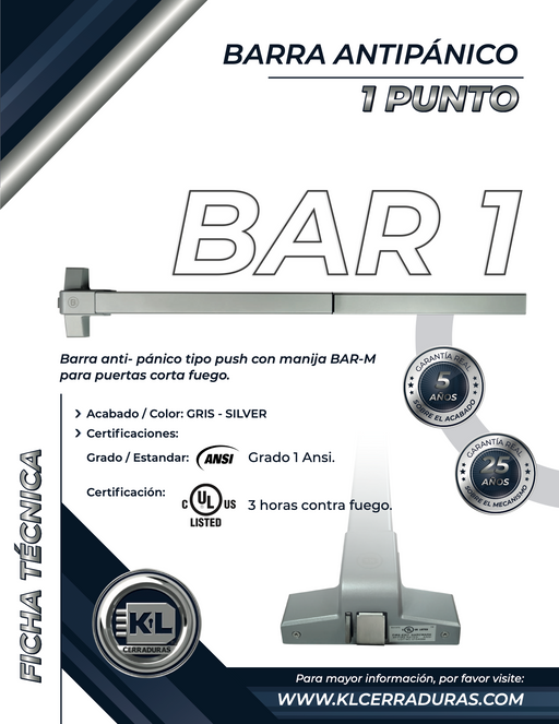 Manufacturing Solutions GroupBAR 1 1 PUNTO Se puede instalar en puerta sencilla, doble con marco o doble sin marco. Dimensiones: Largo: 100 cm se puede cortar a 60...